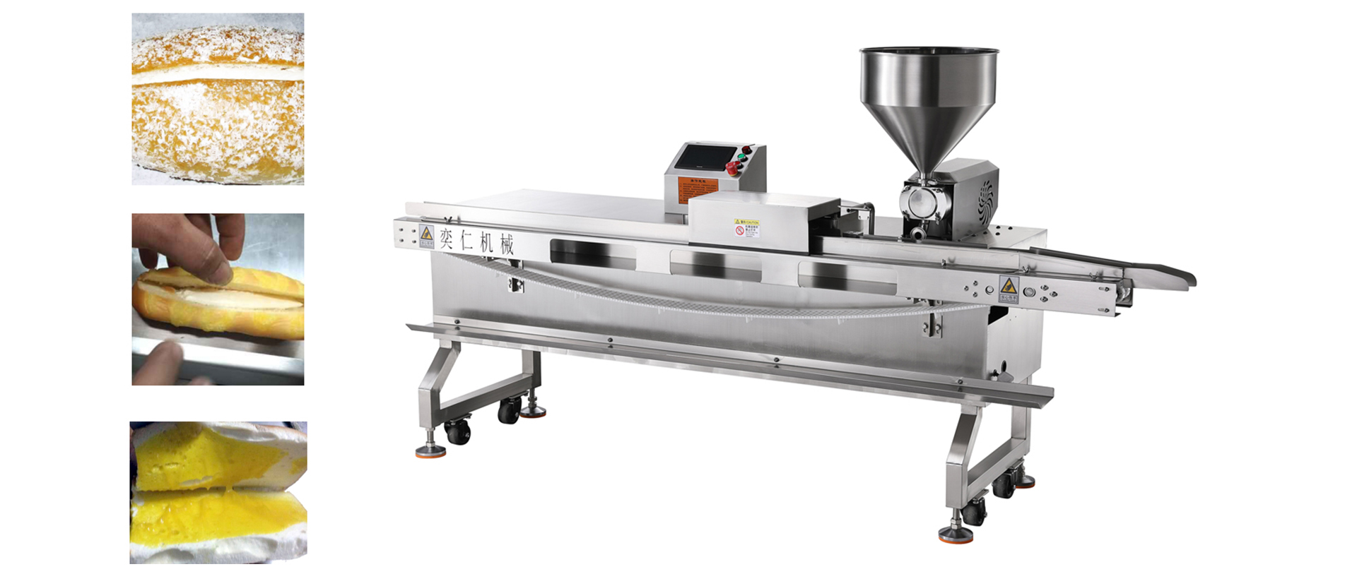 專業(yè)生產(chǎn)各種餅干夾心機(jī)、面包夾心機(jī)、淋漿機(jī)、油炸機(jī)等